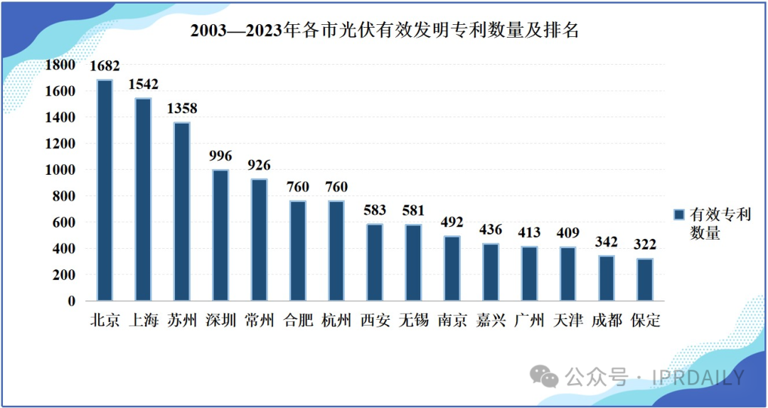 日前,国家工业信息安全发展研究中心、工业和信息化部电子知识产权中心、中国光伏行业协会知识产权专业委员会发布《光伏产业专利发展报告》,系统研究了近年以来我国光伏产业专利发展趋势,从专利申请数量、有效发明专利数量等维度对我国光伏企业及相关城市创新能力进行了研究分析。 报告显示,迄今为止,我国光伏全产业链专利申请总量16.8万件,有效专利总量7.4万件,有效发明专利总量2.2万件,均位居全球首位,我国已经成为全球光伏产业创新的重要一极。2003―2023年,我国光伏产业专利申请量增长迅速,年均增速达到23.1%,硅料、硅片、电池、组件、逆变器等重点领域专利申请量不断扩大,分别达到1.3万件、2.8万件、4.3万件、4.8万件、3.8万件,产业链关键环节创新水平不断提升。从专利被引证次数来看,被引证超过10次的光伏专利3509件,超过50次引证次数的专利194件,专利影响力不断扩大。 报告分别以“专利申请数量”“有效发明专利数量”作为数量指标和质量指标对国内城市光伏专利情况及排名进行了分析。从数量来看,苏州、北京、上海、无锡、常州是拥有专利申请数量较多的城市,苏州以12607件位居首位。从质量来看,北京、上海、苏州、深圳、常州拥有有效发明专利数量分列前五,北京以1682件排名第一。从城市排名来看,产业集聚和技术外溢是激发城市创新活力的关键因素,以企业为创新主体的协同创新引领城市光伏制造业高质量发展。 报告认为,当前我国光伏产业已进入高质量发展新阶段,应充分认识到完善现代化知识产权体系对夯实产业硬实力、提升软实力的关键支撑作用。有必要进一步提升光伏企业技术创新能力和知识产权保护、运用、管理水平,不断增强全产业链优势,推动创新链产业链资金链人才链深度融合,促进我国光伏产业加快向全球创新中心迈进。光伏优势地区应充分发挥产业集聚效应和龙头企业牵引作用,有效链接高端创新生产要素,推动开放式创新,打造区域性光伏产业创新生态网络。 转载内容仅供学习参考,版权归原作者所有,如有侵权,请与我们联系删除!